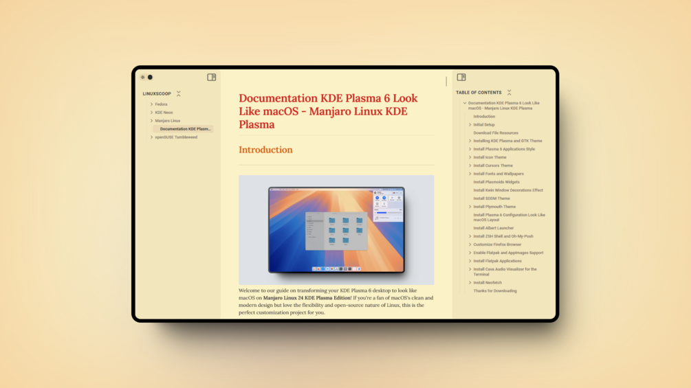 Transform your KDE Plasma 6 desktop into a stunning macOS-like interface with this complete, beginner-friendly documentation. Whether you're a KDE power user or just starting your Linux customization journey, this guide gives you everything you need to replicate the sleek, polished aesthetic of macOS—without leaving the flexibility of Linux.